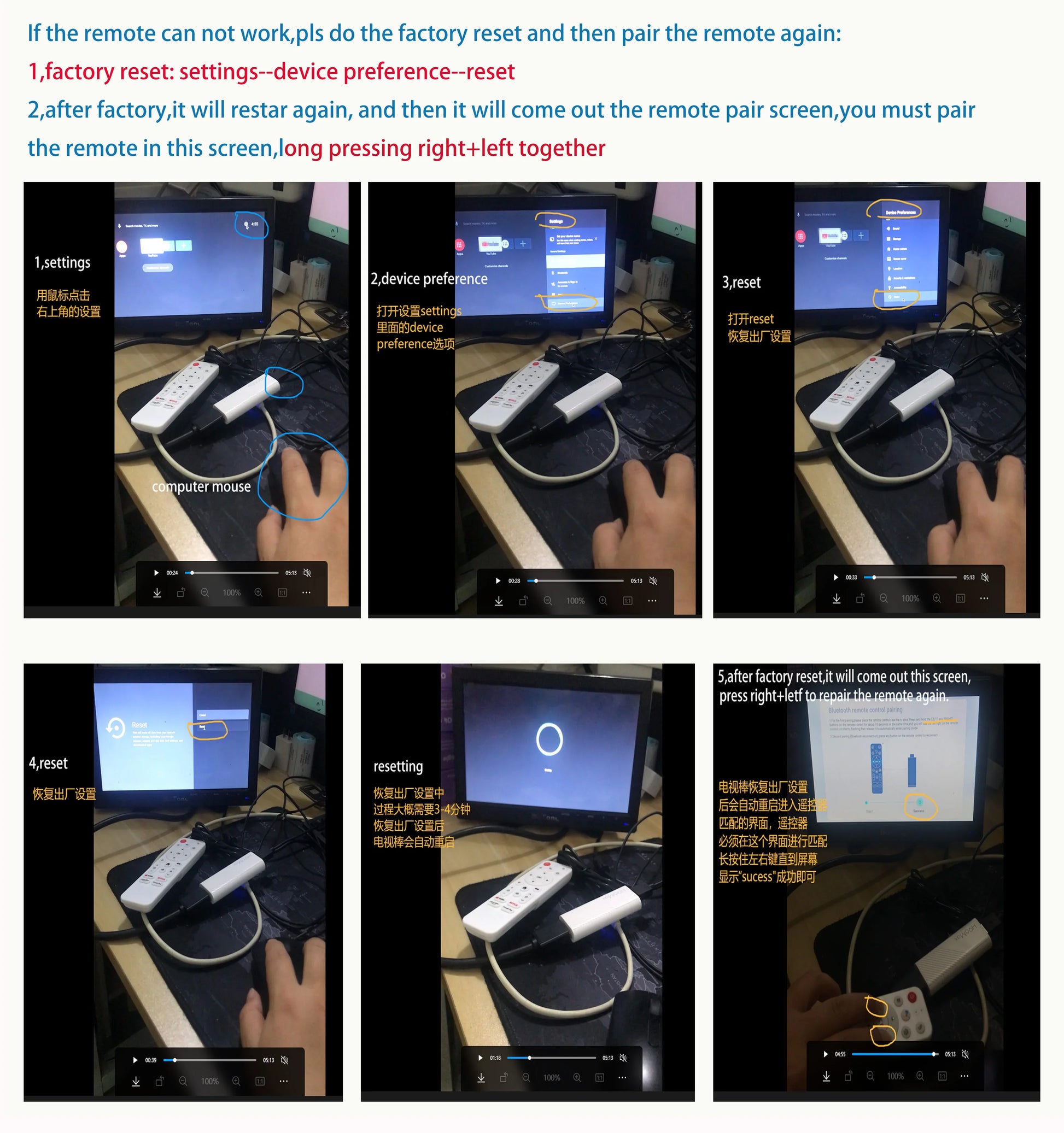 Notice 2: If the remote can not work,pls do the factory reset to recover it.